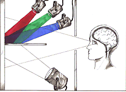 - Experiments were done that were set up to test how an observer would judge just barely visual color differences. The device was similar to the devices that were used to test the human color matching function. In this case the red, green, blue filtered lights were focused to mix colored light to match the target color. The observer changed the balance of the light mixture until they just saw a change in the color of the match lights to the test light.