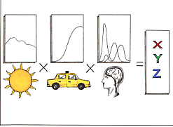 | In the color computer, the color software relates the illuminant data, which is the relative energy of the light source, and multiplies the color measurement data and the color matching functions to yield three curves. These curves are the tristimulus values X, Y, Z. This is the basis for the mathematics in the color computer that tells us how a color will look based on a color measurement. If you want to know how the color will look under another type of lighting, you change the illuminant math and redo the calculation. You do not have to re-measure the object. | |